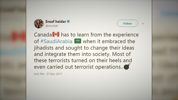 Haidar – the wife of Saudi prisoner of conscience Raif Badawi – is giving Canada an important warning.