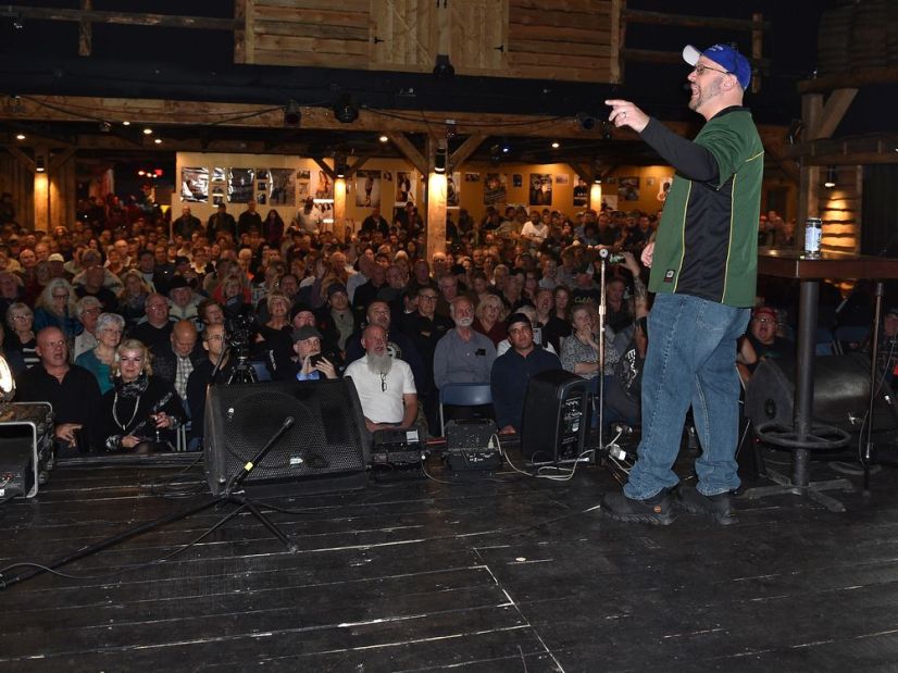 (A packed house listens to Peter Downing, founder of Wexit Alberta, in Edmonton on November 2, 2019.