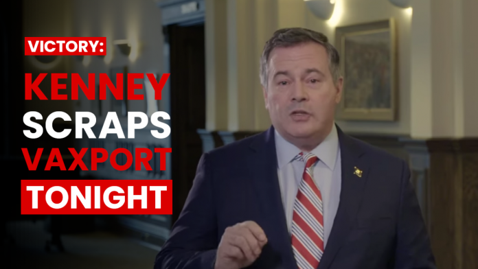 Kenney is announcing an end to the Vaxport program at MIDNIGHT tonight.