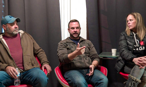 Freedom Convoy organizers (L–R) Chris Barber, Benjamin Dichter, and Tamara Lich speak at a press conference in Ottawa on Jan. 30, 2022. (Limin Zhou/The Epoch Times)
