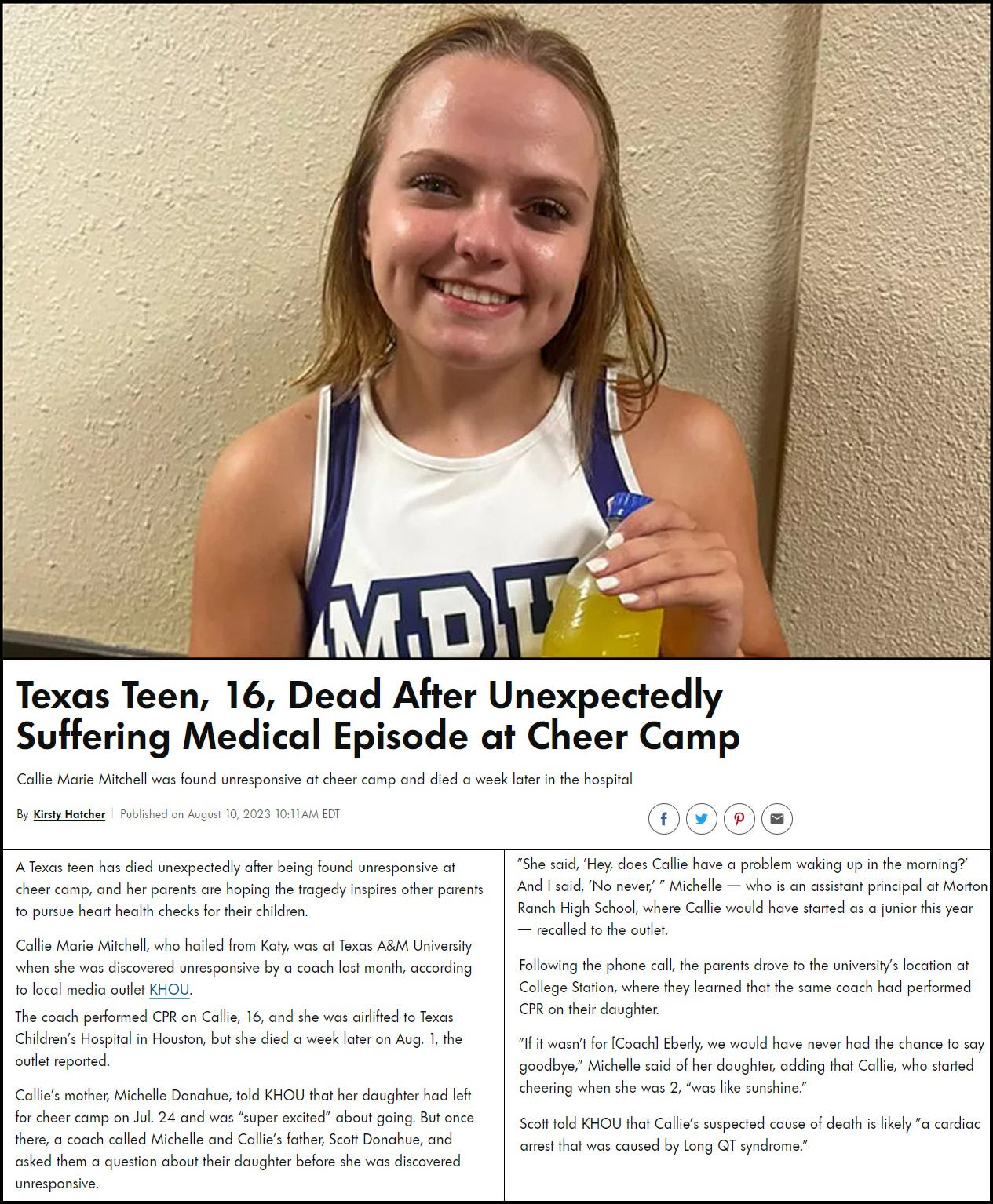 CHEERLEADERS Dying Suddenly or surviving after almost fatal cardiac arrest – 14 tragic stories examined