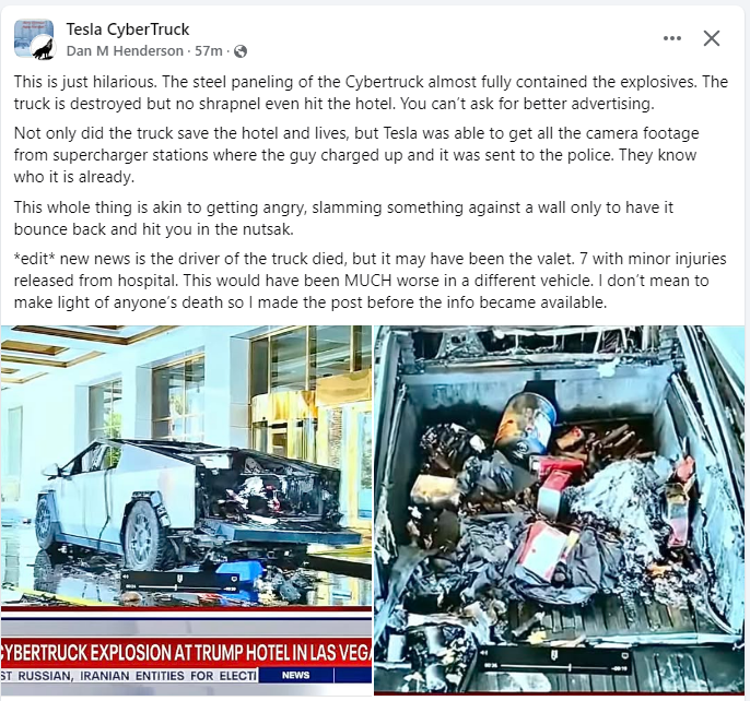 Home Connecting the Dots Tesla Cyber Truck – This is just hilariious! Tesla Cyber Truck – This is just hilariious! January 2, 2025 436 0 Share on Facebook Tweet on Twitter LEAVE A REPLY Cancel reply Save my name, email, and website in this browser for the next time I comment.
