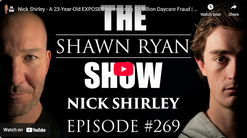 Shawn Ryan Show: Nick Shirley – A 23-Year-Old EXPOSES Minnesota’s $9 Billion Daycare Fraud Screenshot 2026-01-08 at 22-49-49 (18) Nick Shirley - A 23-Year-Old EXPOSES Minnesota’s $9 Billion Daycare Fraud SRS #269 - YouTube