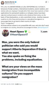 “Our population growth must not come from immigration. We need a MORATORIUM on immigration for as many years as necessary until the housing crisis has cooled down, the negative economic impact of mass immigration has been neutralized, and the process of social and cultural disintegration due to mass immigration has been reversed.”