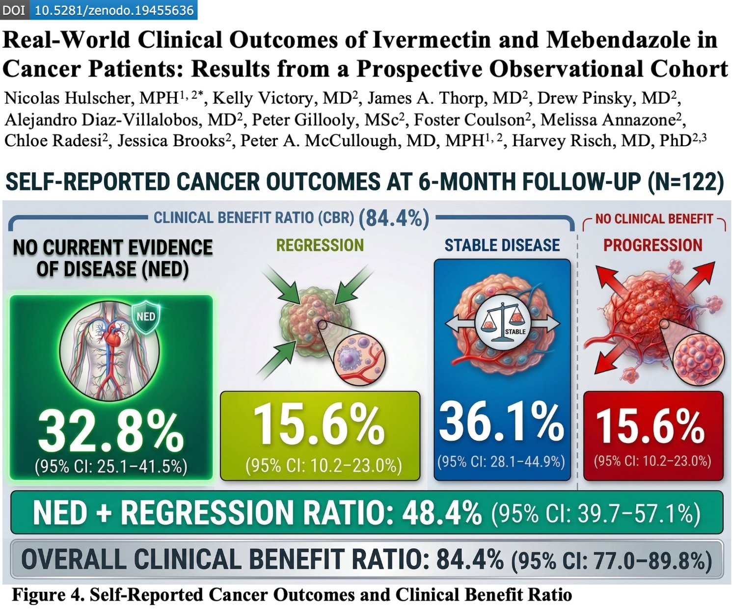 We found 84% of cancer patients taking ivermectin and mebendazole for 6 months declared their cancer was either COMPLETELY GONE, REGRESSED, or STOPPED SPREADING.