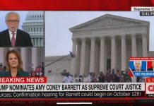 A live CNN report on the nomination of Judge Amy Coney Barrett to the Supreme Court was cut short by anchor Wolf Blitzer after hecklers drowned out reporter Ariane de Vogue with chants of “CNN is fake news!” as she reported from the Supreme Court.