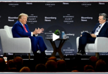 President Trump Sits For Live Interview From Bloomberg News at the Chicago Economic Club event in Chicago, Illinois with Editor-in-Chief John Micklethwait